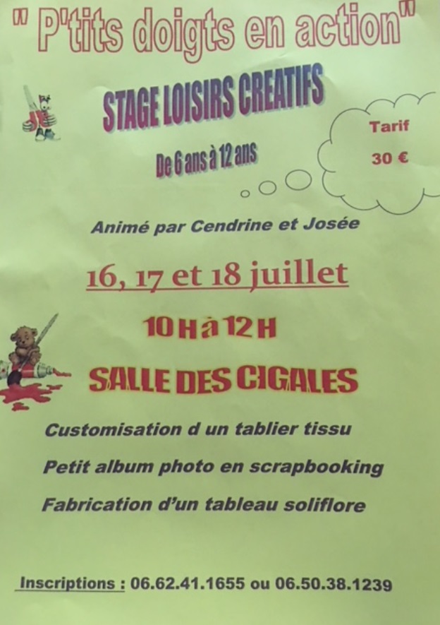 Attention les places sont limitées donc inscrivez-vous dès à présent en téléphonant au: 06 50 38 12 39 ou 06 62 41 16 55 .