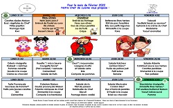 - Chaque mois son repas à thème pour cette période deux repas: le mardi 1 février menu chinois et le mercredi 2 février menu chandeleur.