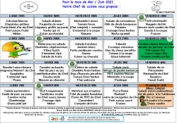 - Cette période quatre menus végétariens le vendredi 21 mai, le mardi 25 mai, le mercredi 2 juin et le mardi 8 juin.