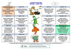 La société Saint-Max traiteur vous transmet le menu de la cantine scolaire pour les mois de février et mars 2020.