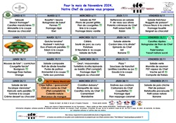 - Menus végétariens : Trois repas végétariens sont prévus ce mois-ci : le lundi 4, le mercredi 10 et le mardi 26 novembre