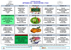 La société Saint-Max traiteur vous souhaite à tous une bonne rentrée et vous transmet le menu de la cantine scolaire pour le mois de septembre 2018.
