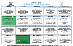 La société Saint-Max traiteur vous transmet le menu de la cantine scolaire pour ce premier mois de rentrée 2019.