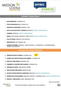 De nombreuses offres d’emploi ( alternance, CDI, Interim ou CDD) gérées par la Mission Locale Ouest Haut Var sont régulièrement mises en ligne. Attention, l’inscription à la Mission locale est obligatoire pour postuler.