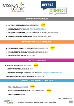 De nombreuses offres d’emploi ( alternance, CDI, Interim ou CDD) gérées par la Mission Locale Ouest Haut Var sont régulièrement mises en ligne. Attention, l’inscription à la Mission locale est obligatoire pour postuler.