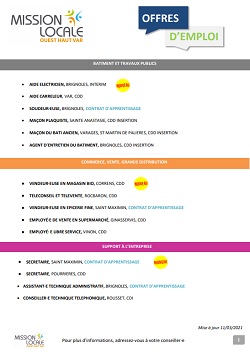 De nombreuses offres d’emploi ( alternance, CDI, Interim ou CDD) gérées par la Mission Locale Ouest Haut Var sont régulièrement mises en ligne. Attention, l’inscription à la Mission locale est obligatoire pour postuler.