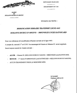les services de 8h00 (au départ de Seillons Source d’Argens) et de 16h05 (au départ de Brignoles) n’existeront plus.