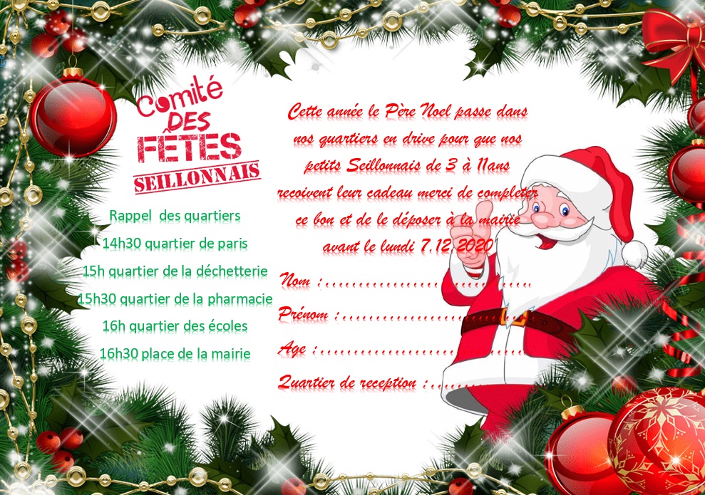 « Le père Noël et ses lutins donnent rendez-vous à tous les petits seillonnais de la maternelle à l’élémentaire le :