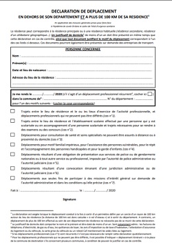 Une nouvelle déclaration de déplacement est mise en place par le gouvernement, elle est exigée lorsque le déplacement conduit à la fois à sortir :