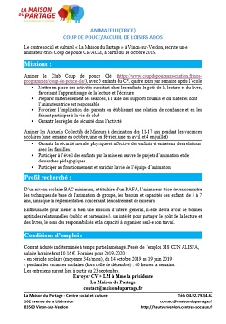 « La maison du partage propose un poste d’animateur/animatrice à l’association coup de pouce.