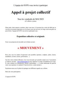 L’équipe de la galerie OupS lance un appel à projet collectif pour le mois de mai.