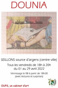 « Tous les vendredis du 1er au 29 mars dès 18h00 venez découvrir la nouvelle exposition « DOUNIA ».