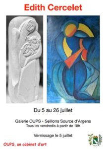 associations OupS : Exposition de juillet 2024 by LeSeillonnais 2jui écrit par LeSeillonnais 2jui 15 L’équipe de OupS vous informe : « Pour le mois de juillet, la galerie OUPS expose les œuvres de : Edith CERCELET dès ce vendredi et tous les vendredis du 05 au 26 juillet 2024 dès 18h00. Venez la rencontrer : Lors du vernissage le vendredi 5 juillet 2024. 83470associationassociation OupSassociationsedith cerceletexpositionexposition oupsgalerie OupsOupSseillonsseillons sourceseillons source d'argensvernissagevivre a seillonsvivreaseillons 0 commentaires 0 FacebookTwitterPinterestEmail LeSeillonnais article précédent La poste : changement d’horaires article suivant Kermesse des Écoles 2024 : Une Journée Olympique Inoubliable pour les Enfants Seillonnais You may also like Une journée VTT inoubliable avec le club des... 23mar Tennis club Seillonnais: des joueurs qui excellent 20mar Un week-end victorieux pour les jeunes judokas de... 13mar Un week-end de réussite pour nos trampolinistes au... 13mar Stage de Peinture : Laissez libre cours à... 12mar Boule : Un Week-end de Compétition et de... 11mar Atelier Taille des Oliviers : Inscrivez-vous dès maintenant... 8mar OupS : exposition de mars 2025 5mar Message de l’association les petits héros 5mar Ateliers : « retour à l’emploi des femmes » 5mar Leave a Comment Cancel Reply Save my name, email, and website in this browser for the next time I comment. Δ
