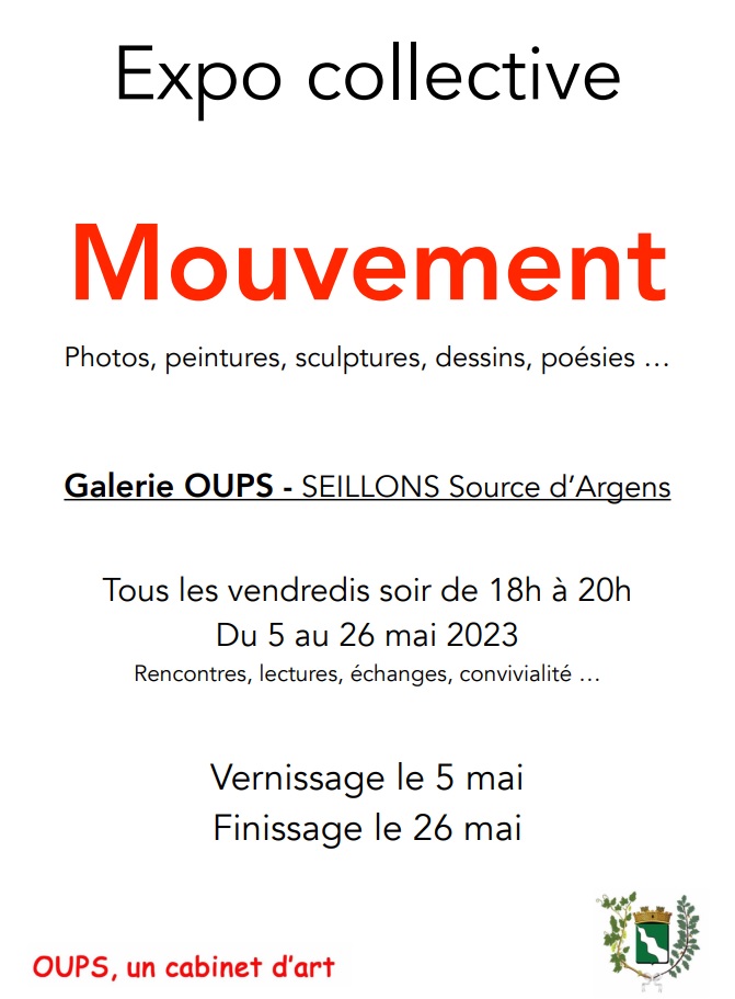« Tous les vendredis du 5 au 26 mai dès 18h00 venez découvrir l’exposition collective de photographies, peintures sculptures, dessins, poésies … intitulée :