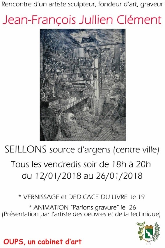 - vendredi 19 janvier: vernissage et dédicace de son livre par l’artiste.