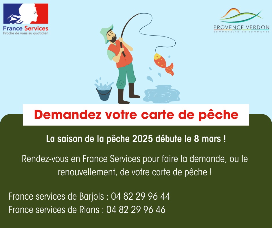 Nouveauté cette année : Vous pouvez désormais acheter votre carte de pêche directement dans les France Services de Barjols et Rians ! Les animatrices sur place vous guideront dans …