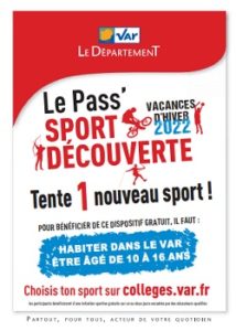 Le Département offre la possibilité de découvrir de nouvelles activités sportives, pendant les vacances d’hiver 2022. Les participants bénéficient d’une initiation gratuite d’une, voire de deux journées dans le Var, encadrée par des éducateurs qualifiés, dans le respect des protocoles sanitaires en vigueur.