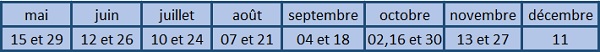 Le calendrier 2015: