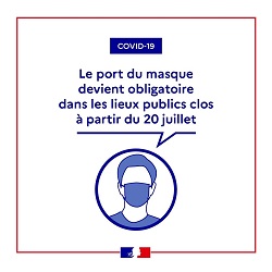 Conformément aux annonces du Premier ministre, veuillez trouver ci-joint le décret préfectoral sur le port du masque dans les lieux publics clos qui précise les différents lieux, tels que les magasins de vente, les centres commerciaux, les administrations et les banques, ou encore les marchés couverts.