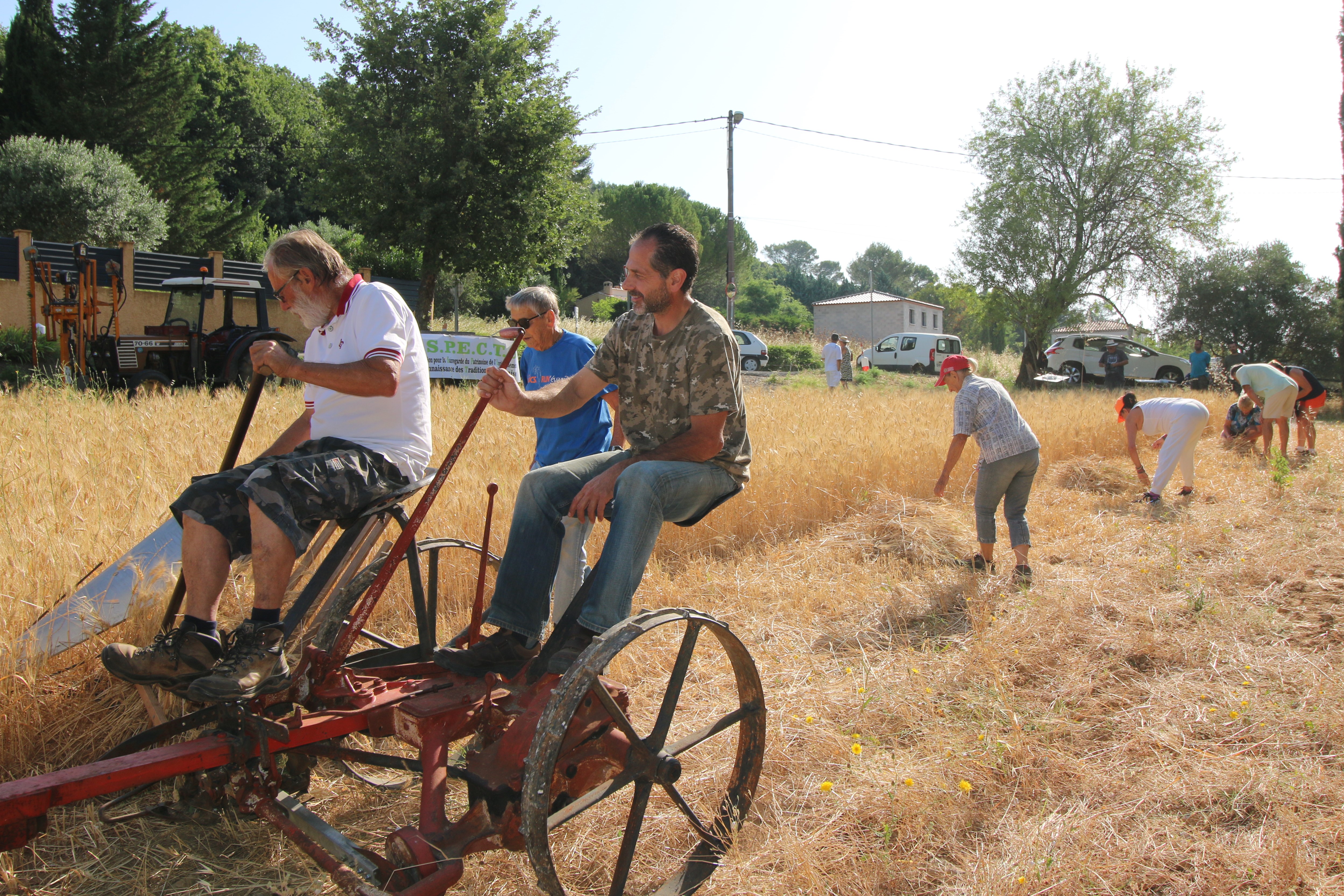 De belles gerbes de blé ont ensuite été liées à l’aide d’une cordelette et en suivant les précieuses indications de Micheline Bonsignour (la présidente d’ASPECTS). Les moissons d’antan sont une occasion unique de revivre la vie dans nos campagnes et de prendre conscience du travail long et fastidieux de nos anciens et de l’importance de la solidarité pour arriver à mener les moissons à terme.