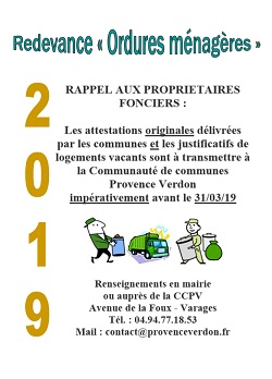 Ainsi, si votre logement n’est pas occupé et si vous fournissez à la communauté de communes Provence Verdon …