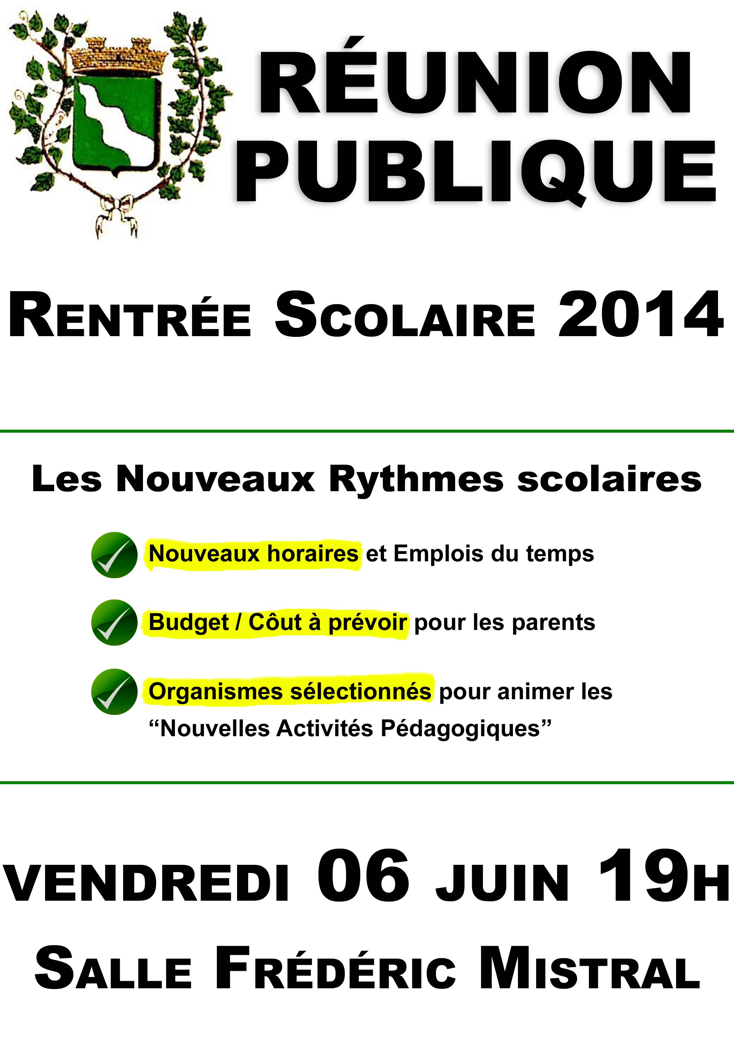 Le comité de pilotage de la réforme à Seillons vous invite à une réunion publique le vendredi 6 juin à 19h00 salle Frédéric Mistral pour aborder notamment: