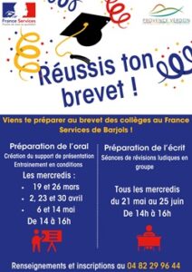 « Suite aux retours (nombreux et positifs) de l’an passé, nous organisons à nouveau cette année à France services Barjols des ateliers (gratuits) à destination des collégiens qui se préparent au brevet.