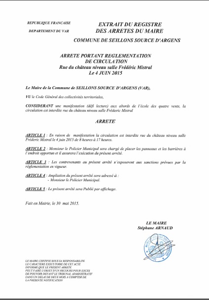 En raison de l’organisation du défi lecture (manifestation organisée par l’école des 4 vents), la circulation est interdite rue du Château au niveau de la salle Frédéric Mistral:
