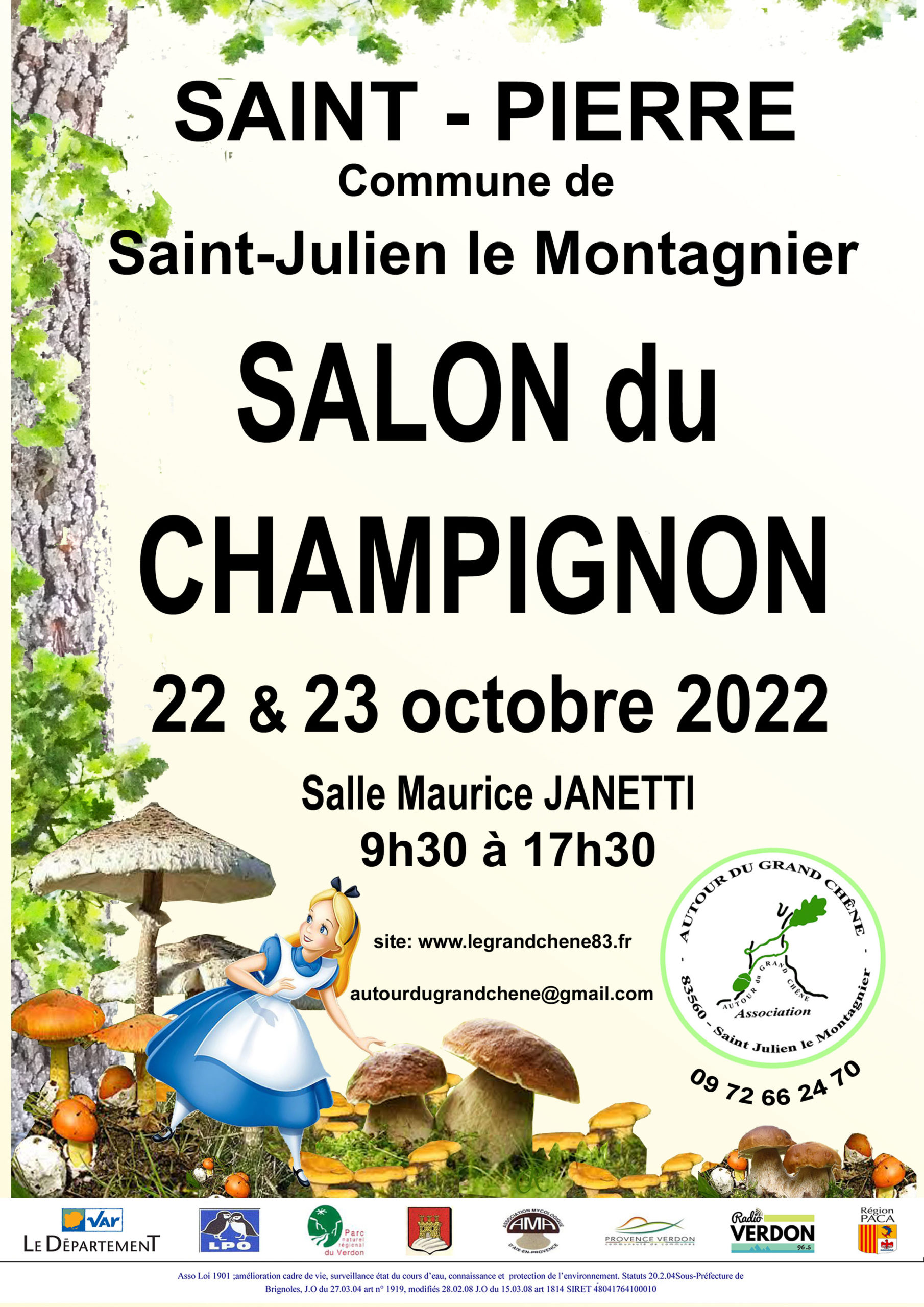 L’association « Autour du Grand Chêne » vous invite au 19è Salon du Champignon qui se tiendra à St Julien le Montagnier les :