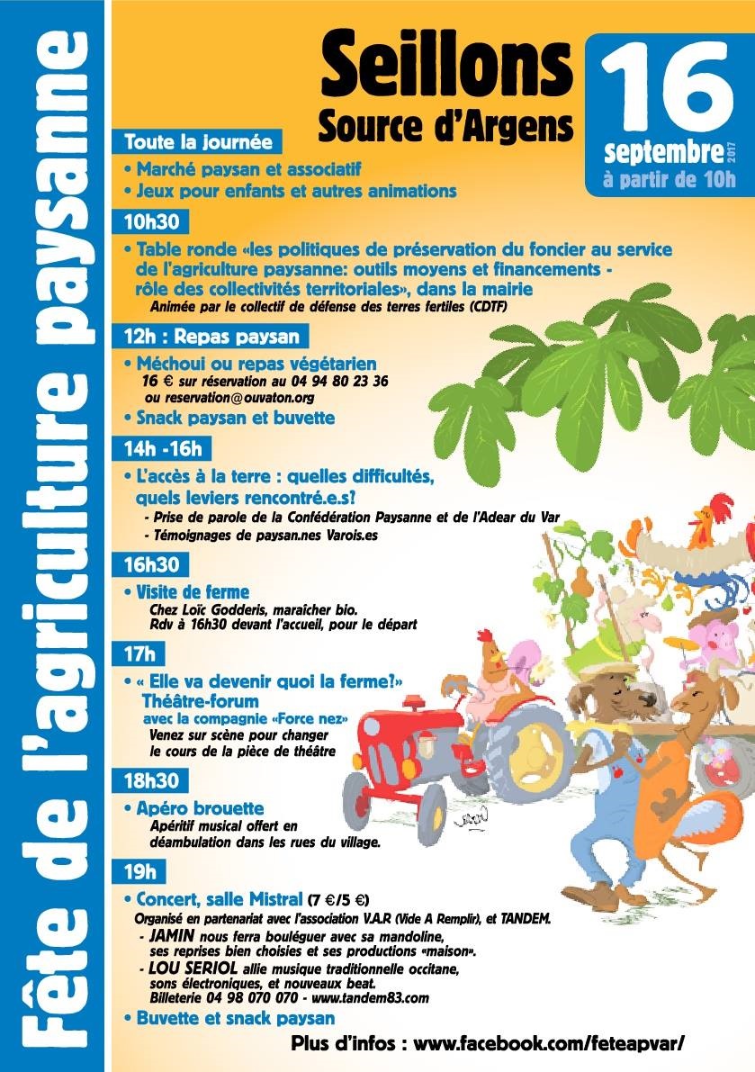 L’Associations pour le Développement de l’Emploi Agricole et Rural (ADEAR) et la Confédération Paysanne du Var organisent la 7ème édition de la Fête de l’Agriculture Paysanne. Celle-ci aura pour thème :