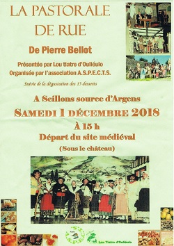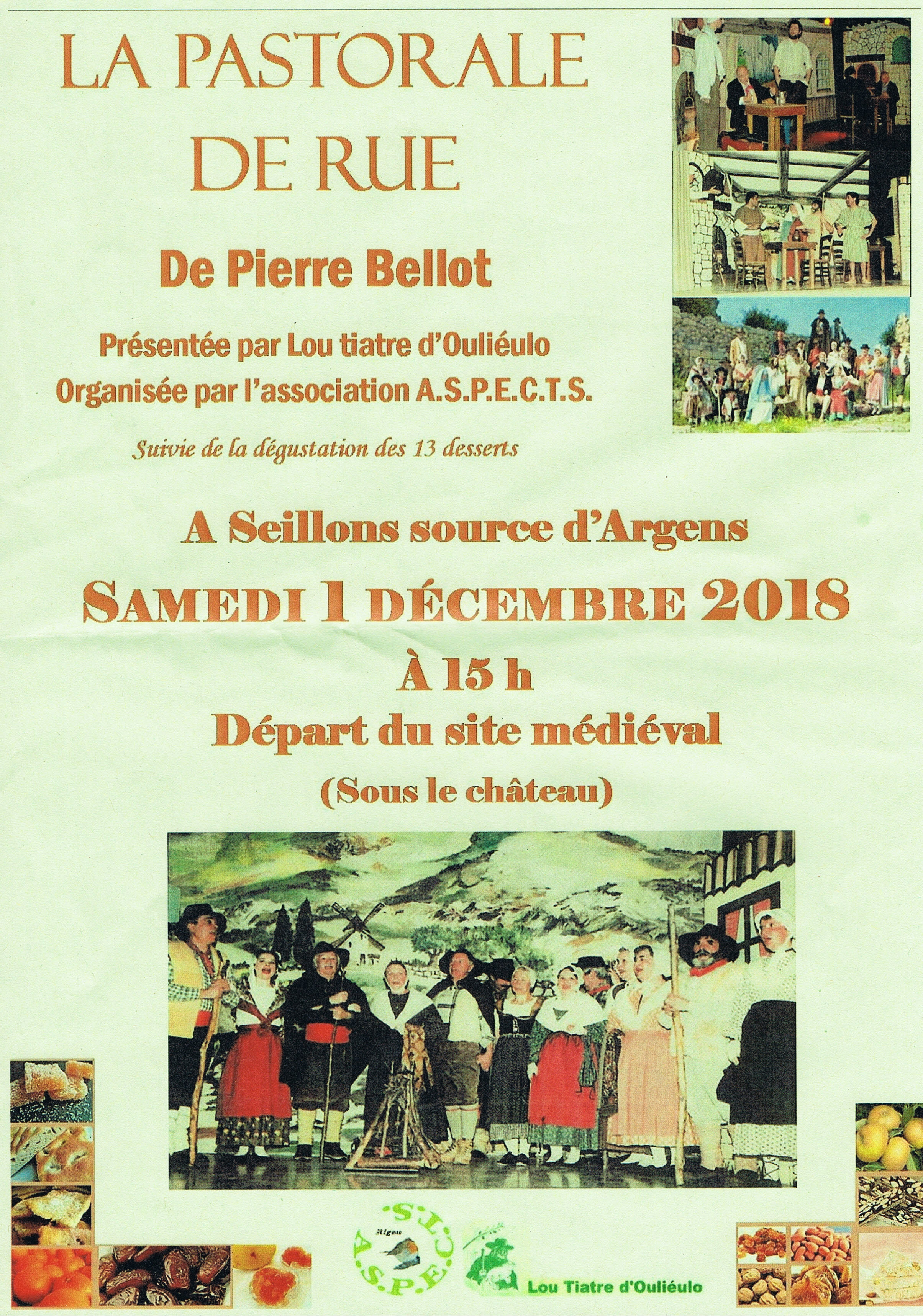 L’association ASPECTS vous invite à découvrir la Pastorale de Pierre Bellot interprétée par la troupe de Lou tiatre d’Ouliéulo. Cette comédie traditionnelle du Noël Provençal en 4 actes se déroulera en différents lieux du village: