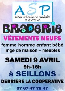 L’association ASP (action solidaire de proximité) vous informe de l’organisation d’une braderie: