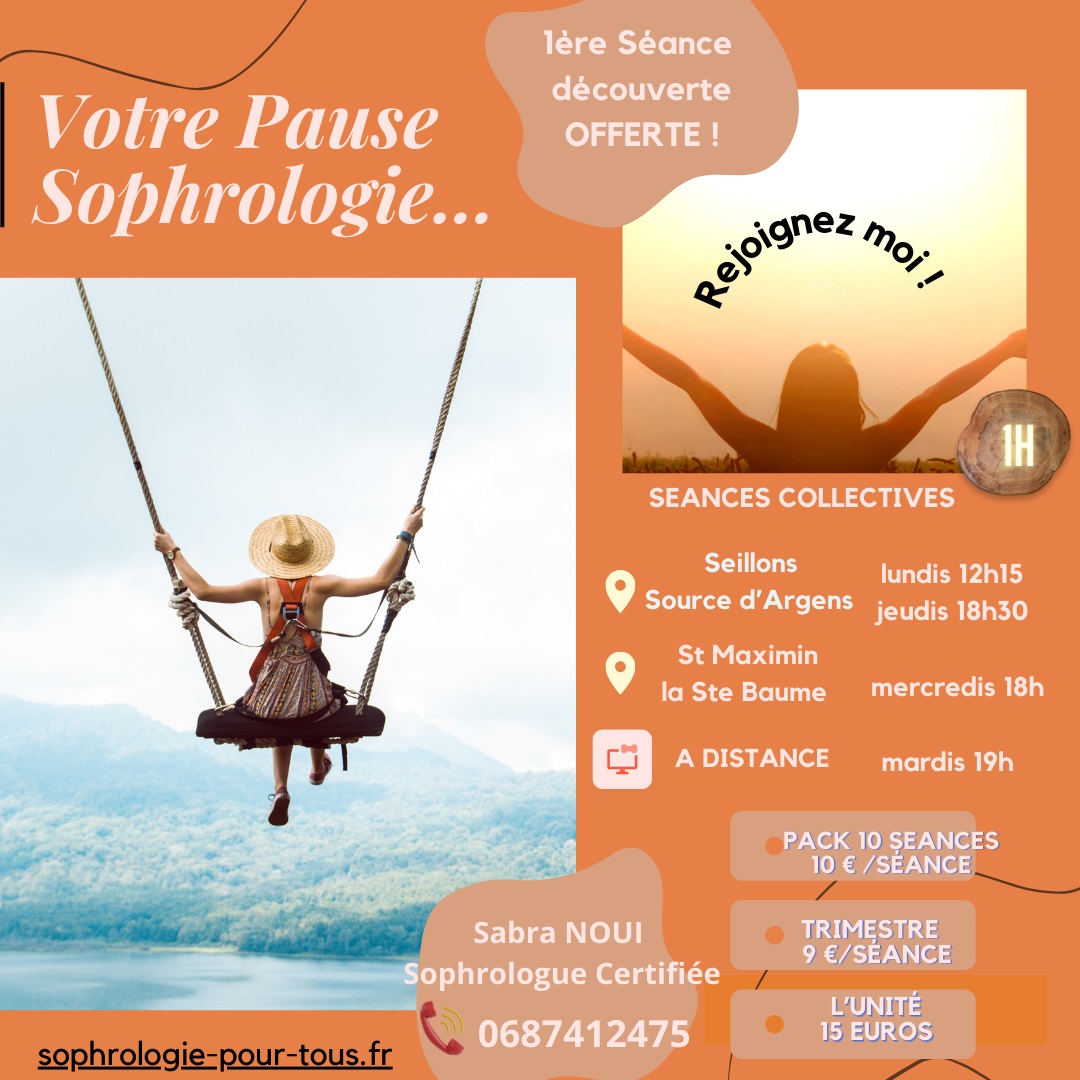 - À Saint-Maximin-la-Sainte-Baume : Mercredi à 18h00, au Centre bien-être Belle et Santé, 698 Bd Saint-Jean, 83470 Saint-Maximin-la-Sainte-Baume.