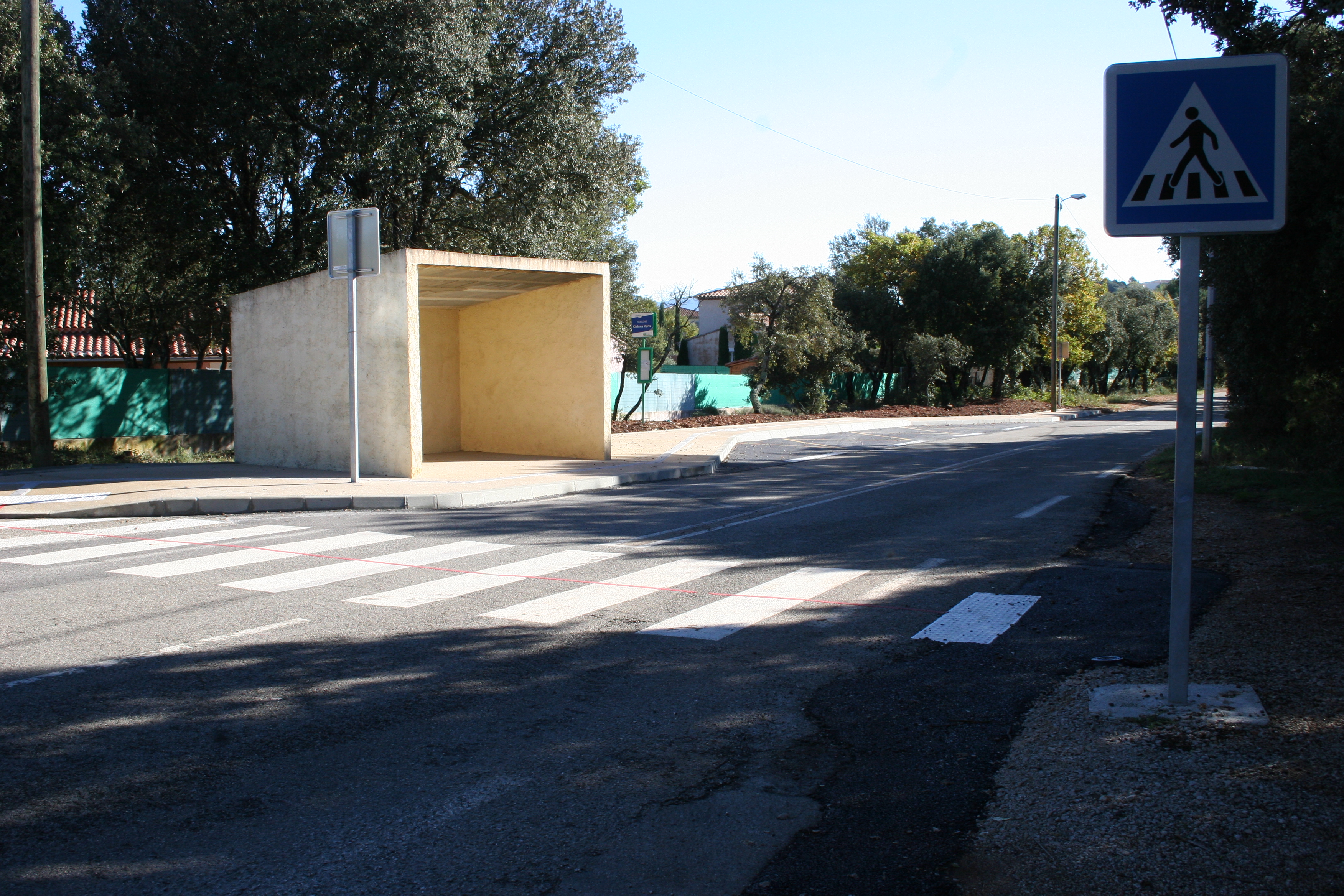 Le projet du conseil général du Var a débuté par la sécurisation des points d’arrêts des bus scolaires « …où les dangers liés à la circulation peuvent être grands !.. ». En lien avec la municipalité, l’amélioration des arrêts pour assurer la sécurité des étudiants et leur confort se met en place. Aujourd’hui, les travaux sont finis au niveau du lotissement des chênes verts :