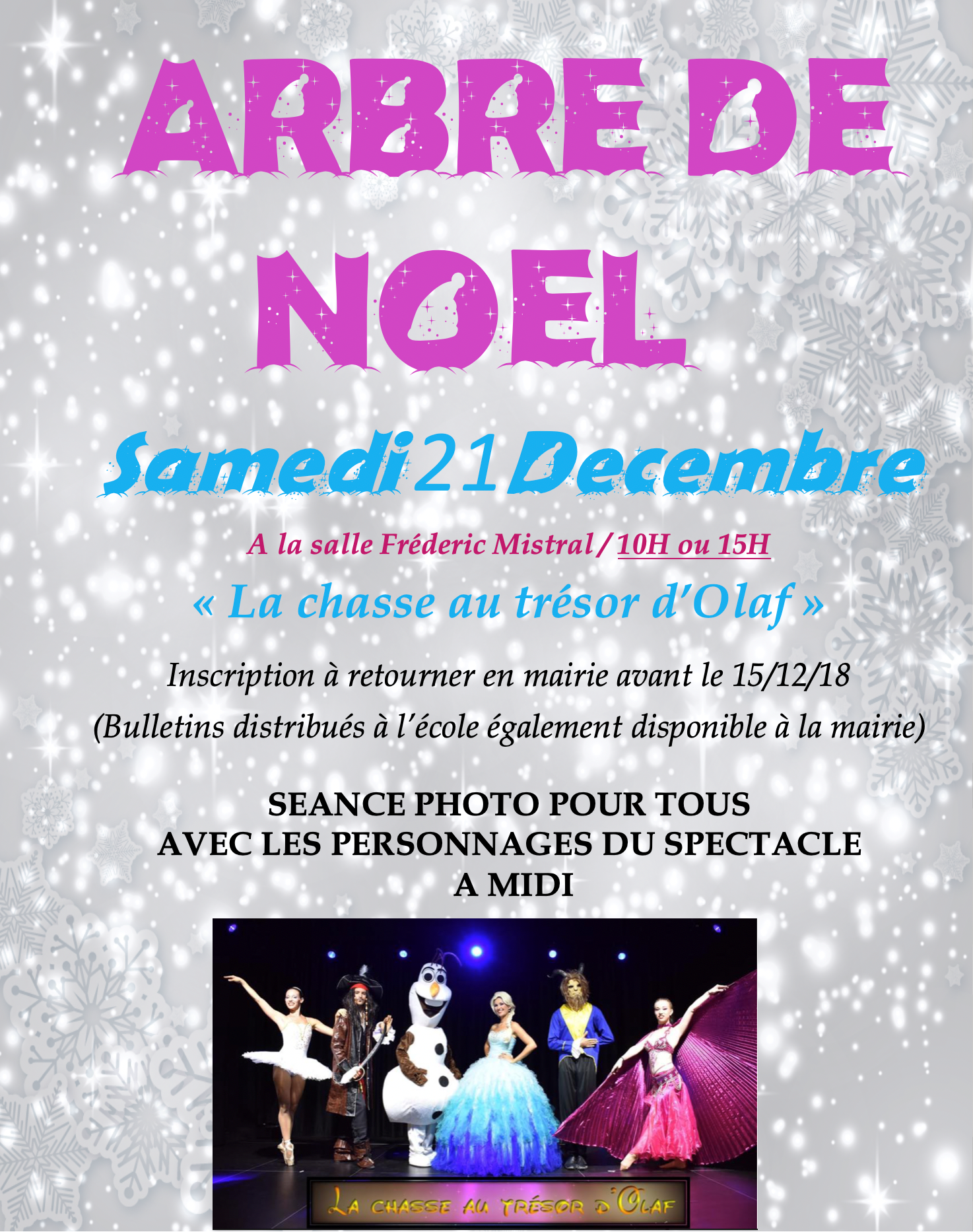 Pour permettre à tous les enfants de participer ce n’est pas un mais deux rendez-vous inoubliables que vous propose le comité des fêtes avec: spectacle, goûter, et photo souvenir.