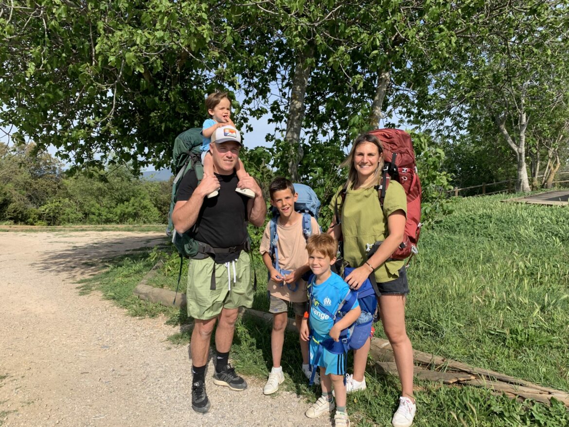 … Marion et Walter et trois enfants Louka (9 ans), Sasha (5 ans) et Andréa (tout juste 1 an), deux gros sacs à dos pour les parents dont un de 20Kg pour Walter ( ancien rugbyman pro) deux sacs plus petits mais bien remplis pour Louka et Sasha. Ils sont animés par une soif de découvertes et de nouveaux horizons. Ils ont aussi l’envie de passer du temps en famille loin de la routine quotidienne.