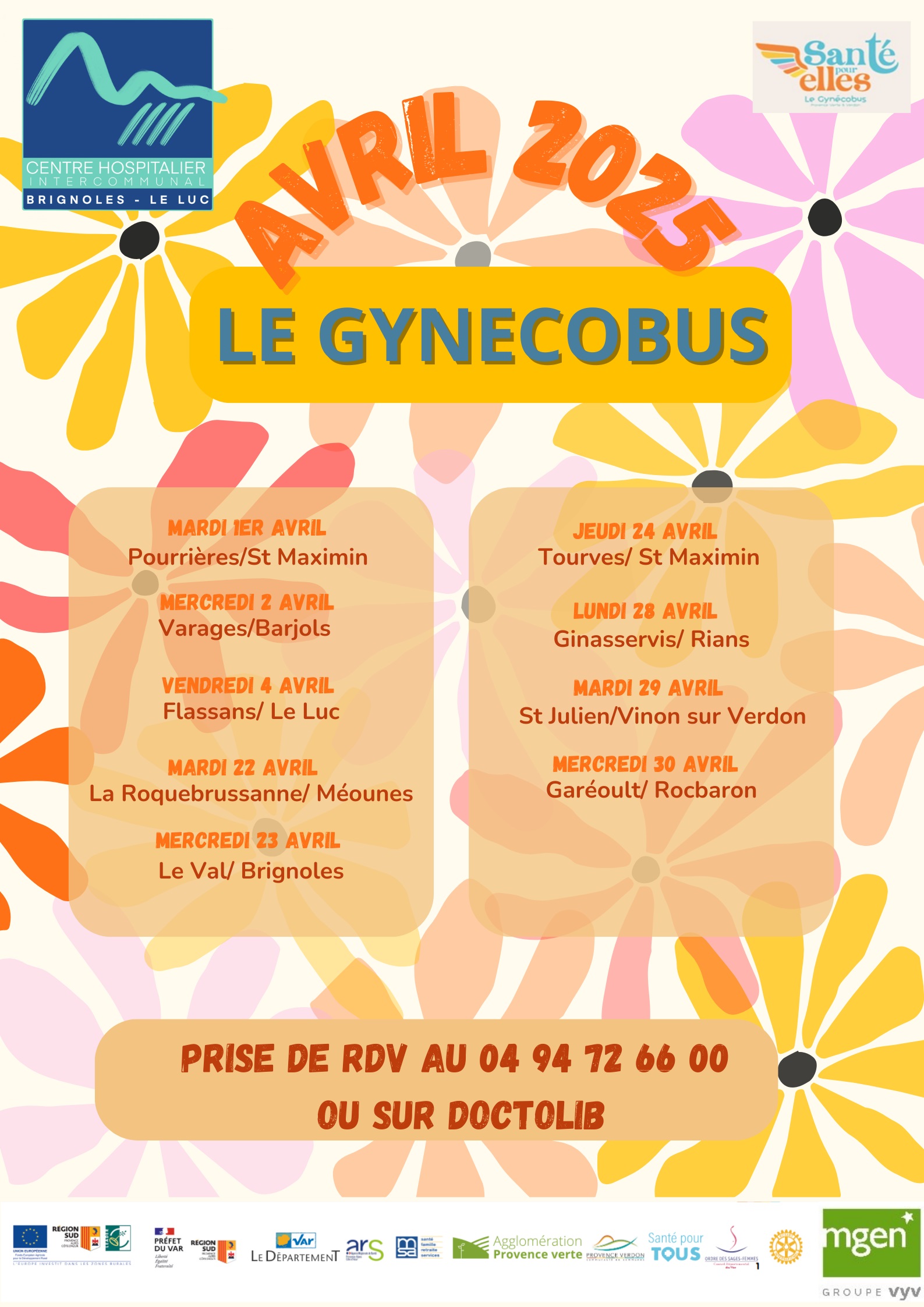 Le gynécobus du centre Hospitalier Intercommunal de Brignoles – Le Luc vous informe de sa tournée pour ce mois d’avril 2025.