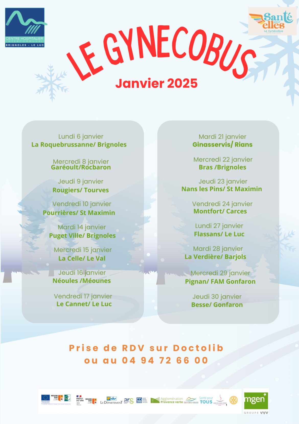 Le gynécobus du centre Hospitalier Intercommunal de Brignoles – Le Luc vous informe de sa tournée pour ce début d’année 2025.