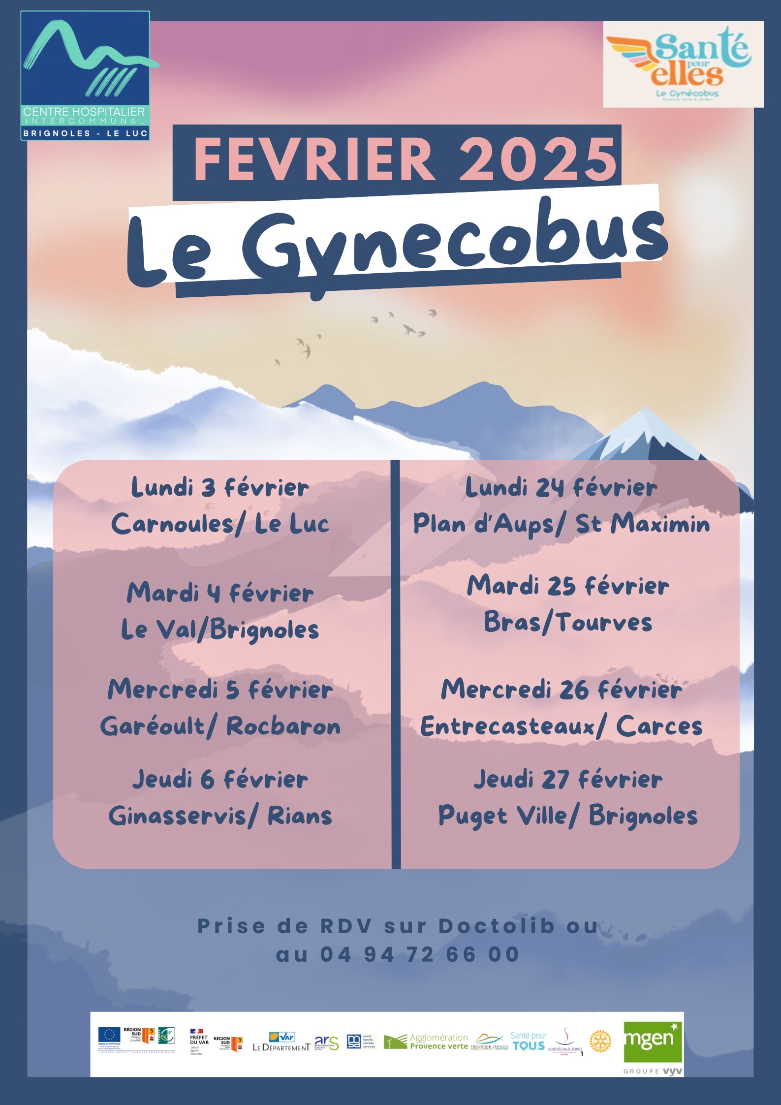 Le gynécobus du centre Hospitalier Intercommunal de Brignoles – Le Luc vous informe de sa tournée pour ce mois de février 2025.