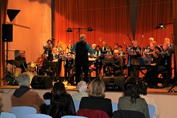 La deuxième grande partie du programme a entraîné le public à une messe Jazzy très originale en anglais et en latin, pleine de peps et de joie. Le public ne s’y est pas trompé et a accompagné les musiciens en claquant en rythme dans ses mains. En effet, l’oeuvre de Martin Wöllinger (compositeur allemand) est une musique aux sonorités et rythmes énergiques et entraînant mélangeant salsa, bossa, nova…..