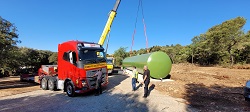 Après un trajet plutôt épique, la cuve DECI d’une capacité de 120m3 a pu rejoindre son …