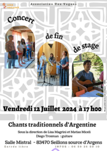 L’association Vox Vagans vous invite à leur concert Gratuit de chants traditionnels d’Argentine :