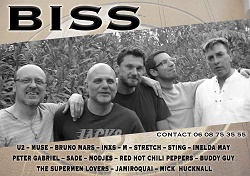 BISS est un groupe de 5 copains musiciens, qui vous proposent des reprises pop, funk et rock d’hier et d’aujourd’hui de : U2, Bruno Mars, INXS, M, Jamiroquai, Imelda May, Sade, Peter Gabriel, Muse ….