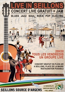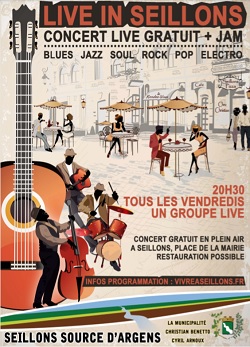 Live in Seillons c’est tous les vendredis soirs de cet été : un concert gratuit, live et en plein air sur une place agréable où il fait bon vivre !!!